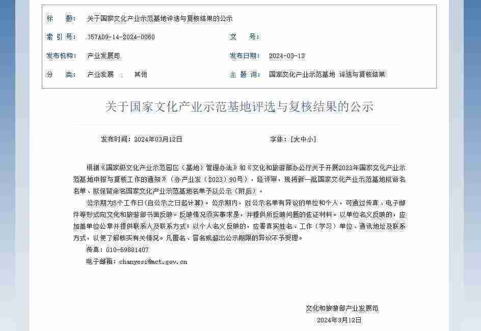 新一批国家文化产业示范基地公示,,,,35273成功入围